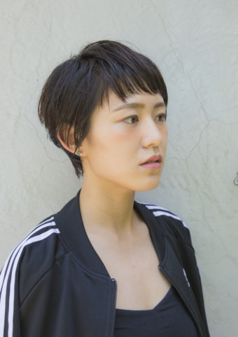 あえて顔まわりの出すことで肌が明るく全体的にも明るい印象に見えます。耳まわり、えりあしはすっきりさせて上の毛は少し長めに残してあります。前髪は短くても長めでもいけるスタイルになってます! ウェットなスタイリング剤を全体にもみ込んでつけて顔まわりの毛をあえて後ろにもっていくのがポイントです!どっちかを耳にかけると雰囲気も変わります。金ピンをつけたりするとちょっとしたアレンジにもなります!