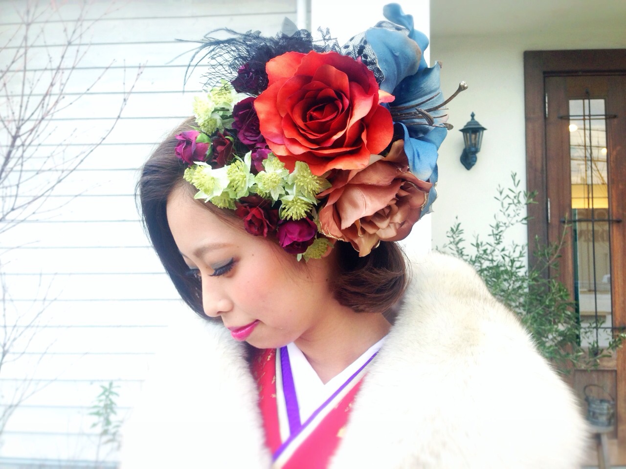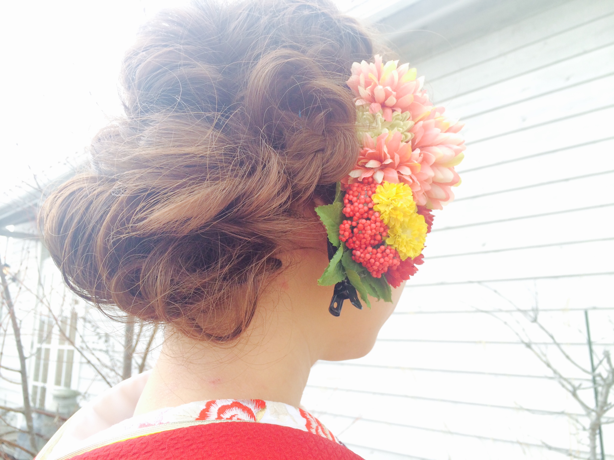 ヘアーもお花とかんざしに似合う
