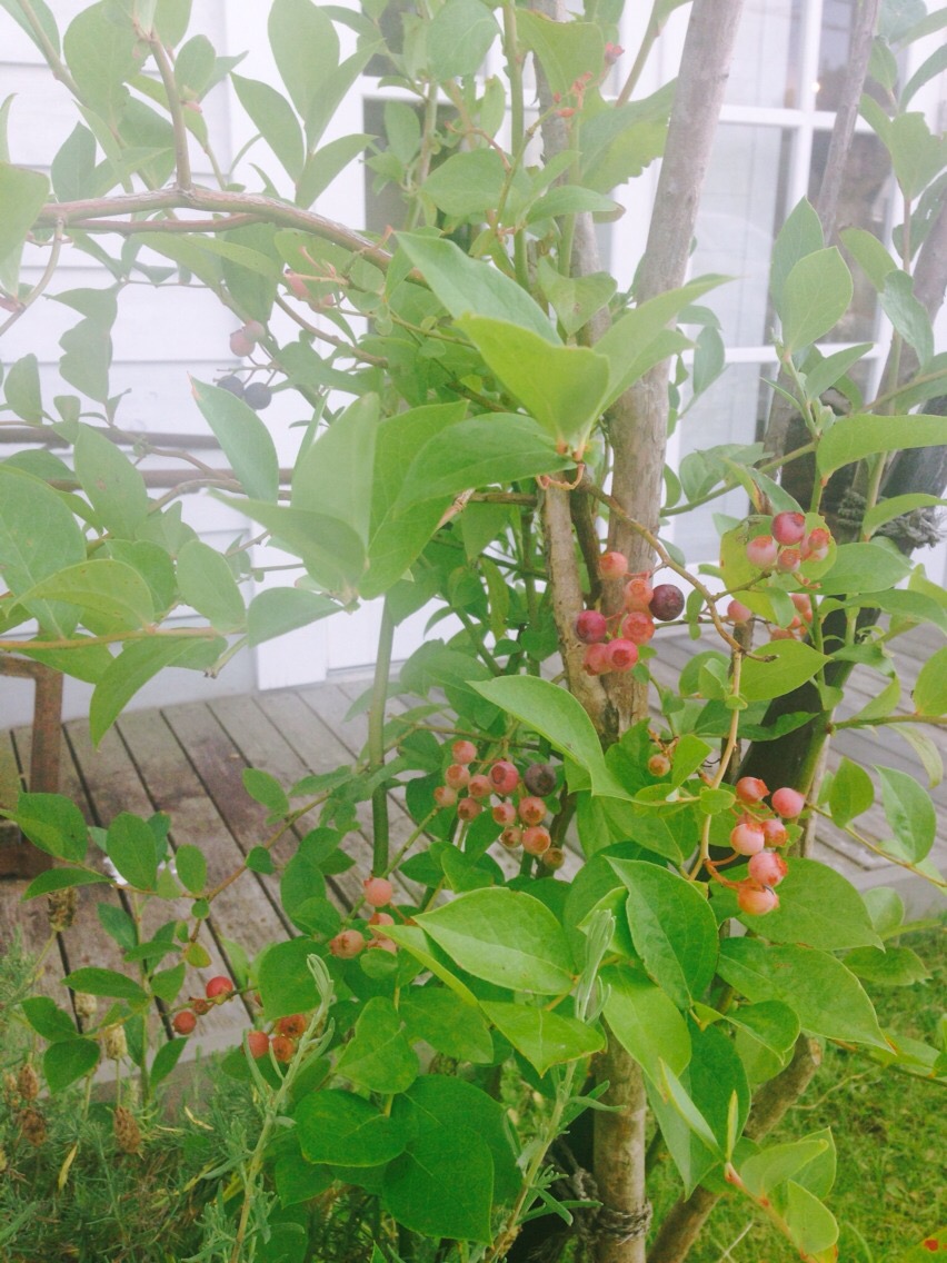 そんなな中!お庭のブルーベリーが実り、少しずつですがおいしそうな紫色に色付きはじめました!!!